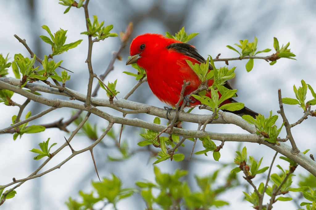 “We knew Mom was there, she was the one who laid the egg and sat on the nest,” Toews said. “It’s still not obvious to us where that would have been, because the two species prefer such different habitats. Wherever it was, her pair either stayed around long enough for the young offspring to learn his father’s song or learned a neighborhood scarlet tanager song.”