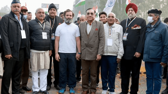 The Congress’s Bharat Jodo Yatra on Sunday saw the presence of former Chief of Army Staff General Deepak Kapoor and other veterans as it traversed through Haryana. Rahul Gandhi was seen greeting the ex-army officers as he continued to lead the march for the grand old party’s mass contact programme, which will conclude later this month in Jammu and Kashmir’s Srinagar.