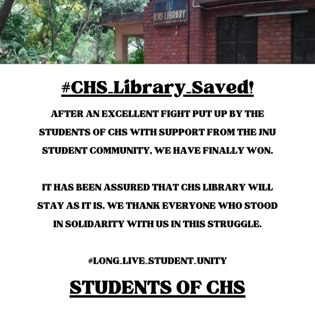 CHS library at JNU won’t be shifted CHS library at JNU won’t be shifted, say professors CHS library at JNU won’t be shifted, say professors Share this: Click to print (Opens in new window) Print Click to email a link to a friend (Opens in new window) Email Click to share on Facebook (Opens in new window) Facebook Click to share on LinkedIn (Opens in new window) LinkedIn Click to share on Reddit (Opens in new window) Reddit Click to share on X (Opens in new window) X Like Loading... Related