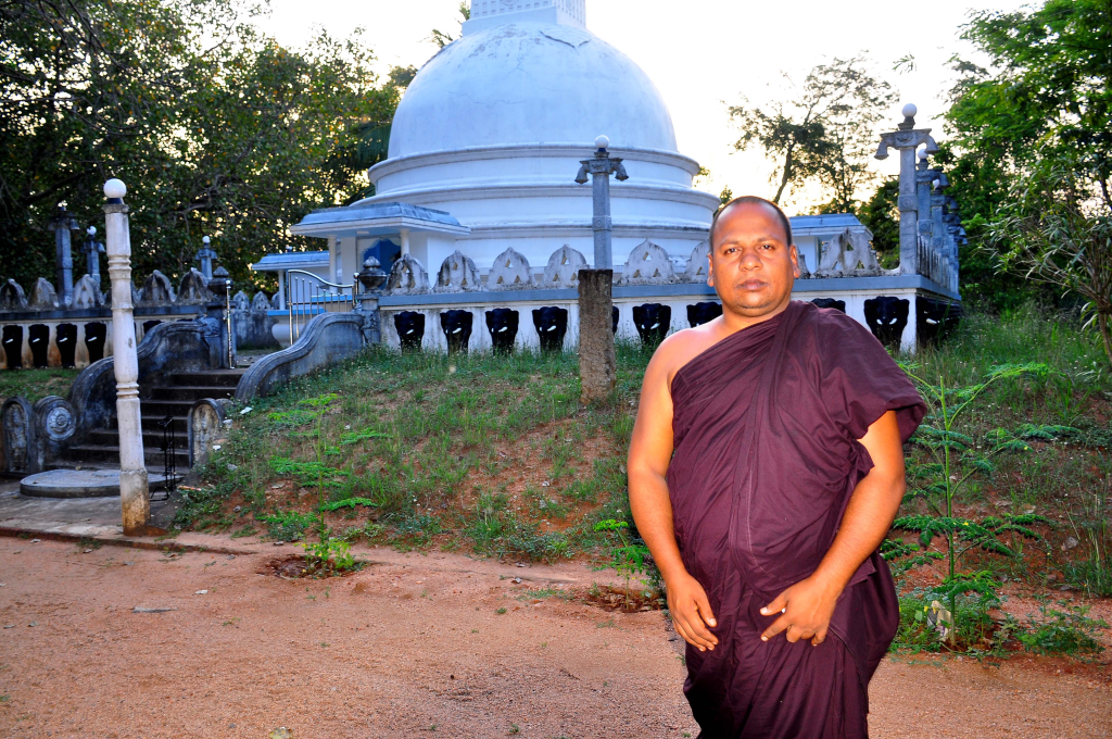Amila Sampath, a farmer we had talked to earlier, has strolled up as we’re talking to the head monk and listens intently. Sampath, 30, is among the 300 or so devotees of the temple, in this predominantly Sinhalese Buddhist community.