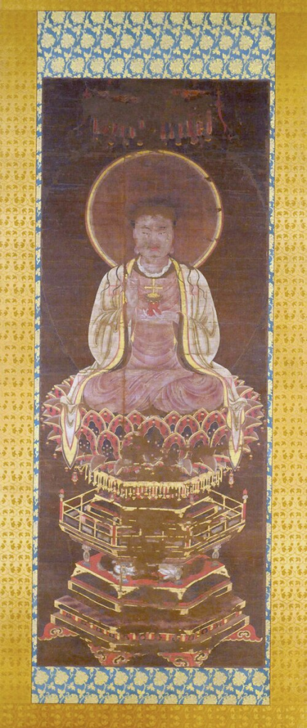 Manichaean Painting of the Buddha Jesus depicts Jesus Christ as a Manichaean prophet. The figure can be identified as a representation of Jesus Christ by the small gold cross that sits on the red lotus throne in His left hand. (Source: Wikipedia)