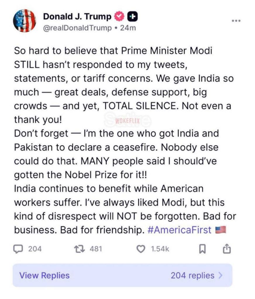 NB: Perhaps the RSS/BJP government can stop buttering up the USA and return to India’s traditional non-aligned foreign policy, for which they have spent a lifetime abusing Jawaharlal Nehru. And they can begin by denouncing the genocide in Gaza conducted with the full support of the USA and UK. DS