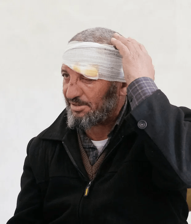 Mohammed Shnaran is a 57-year-old farmer who has six children, including his deceased son. A bandage on his forehead above his left eye and stitches in his head are testimony to what happened. He’s the father of Amir Shnaran, 29, married with two daughters, who was killed here two days before our visit, and also of another married son, Khaled, 34, who was seriously wounded.